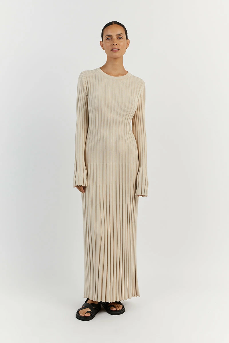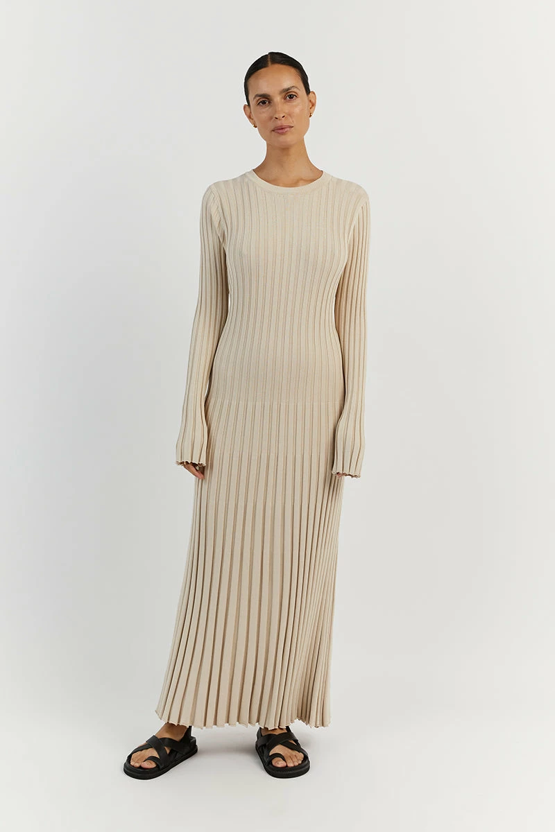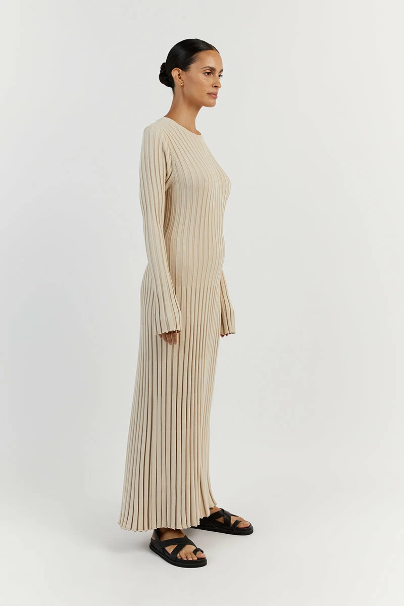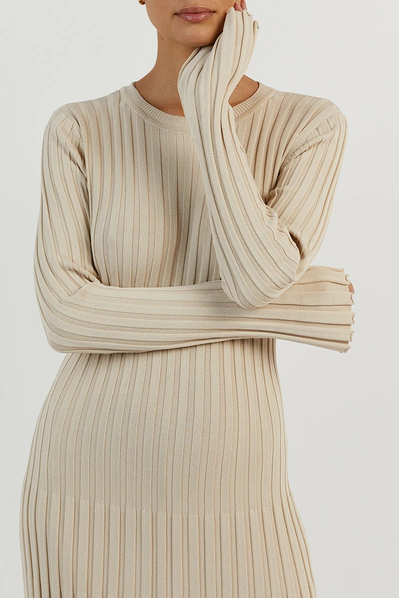 DISSH ADA STONE LONG SLEEVE MIDI DRESS