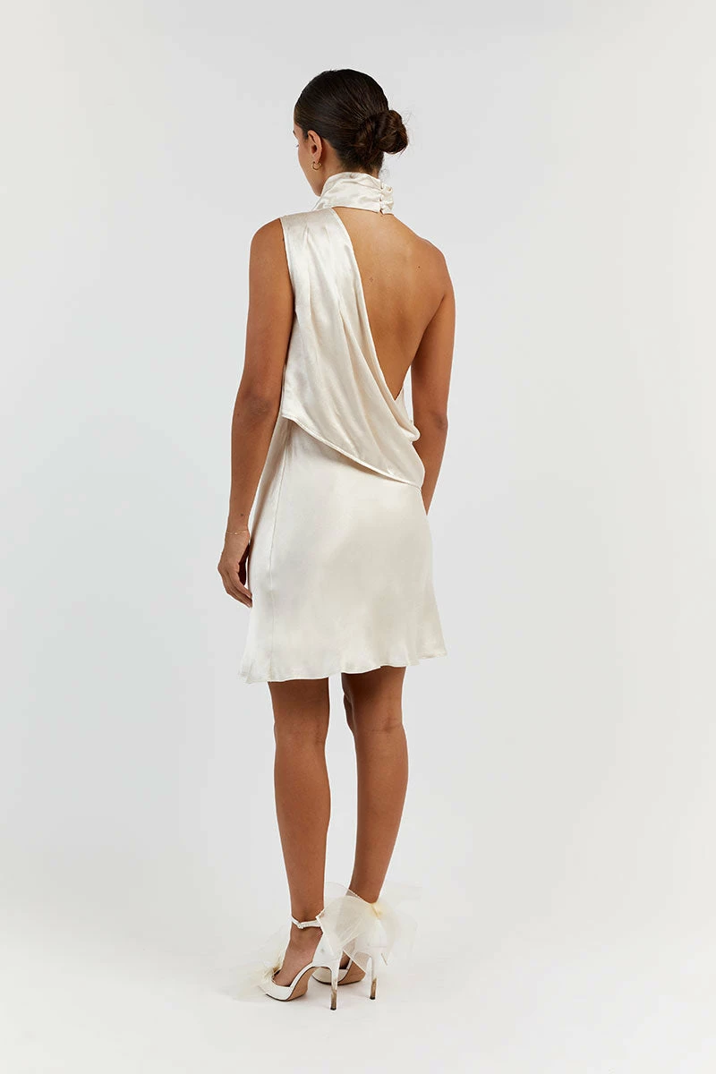 DISSH AISLE PEARL SATIN BACKLESS MINI DRESS
