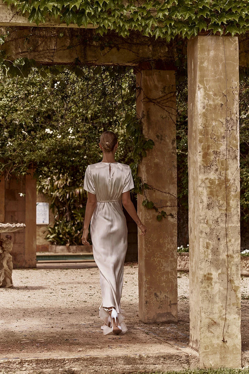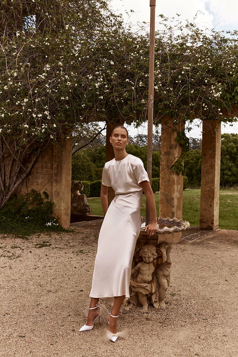 DISSH AISLE PEARL SATIN MIDI DRESS
