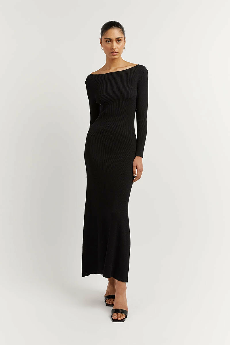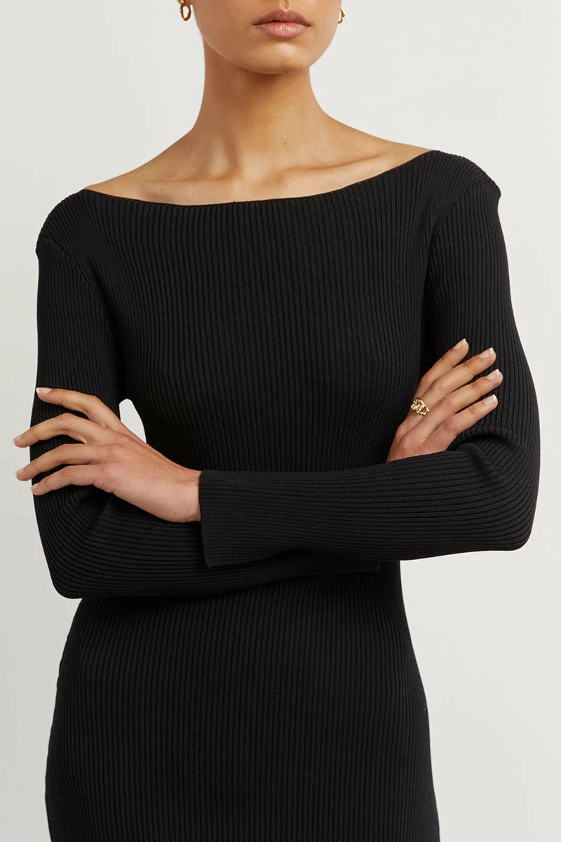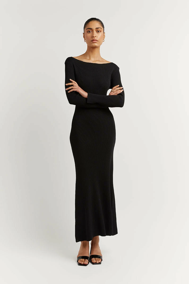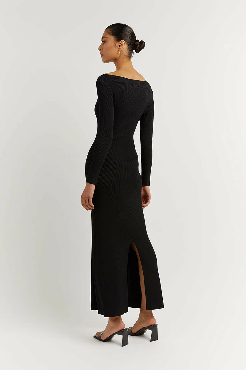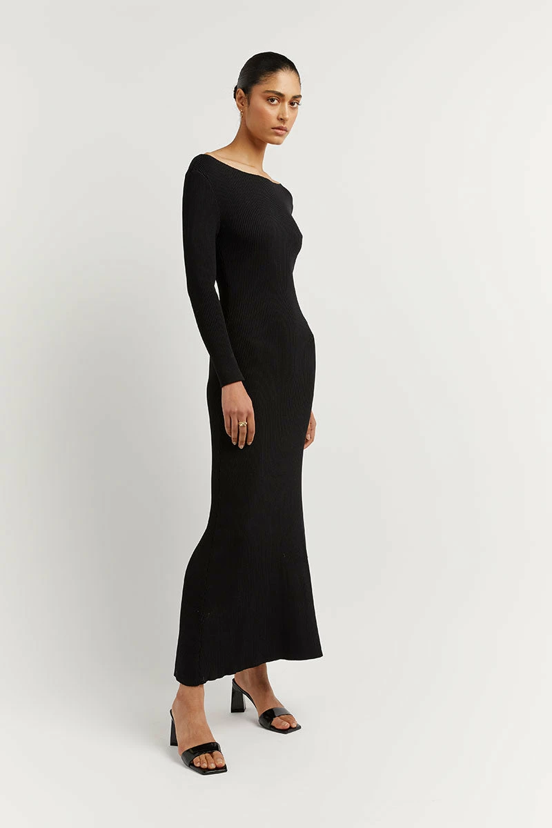 DISSH ARIA BLACK KNIT SLEEVED MIDI DRESS