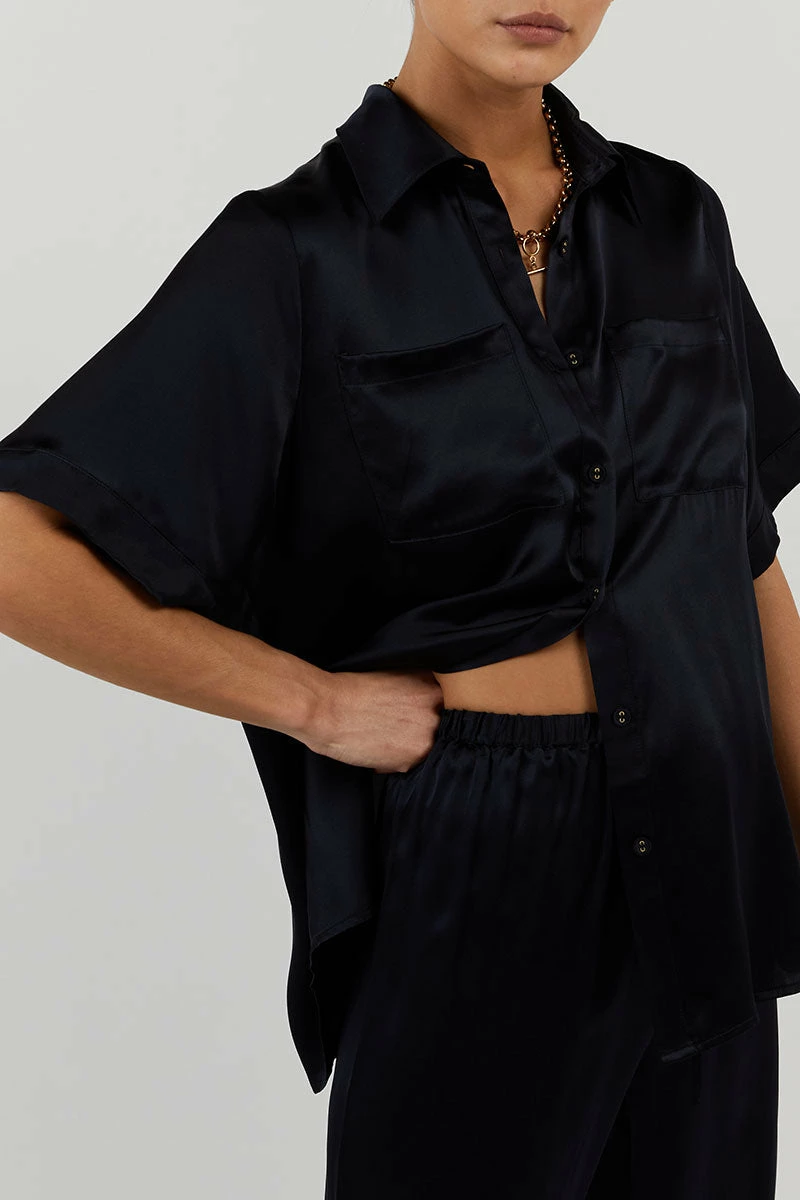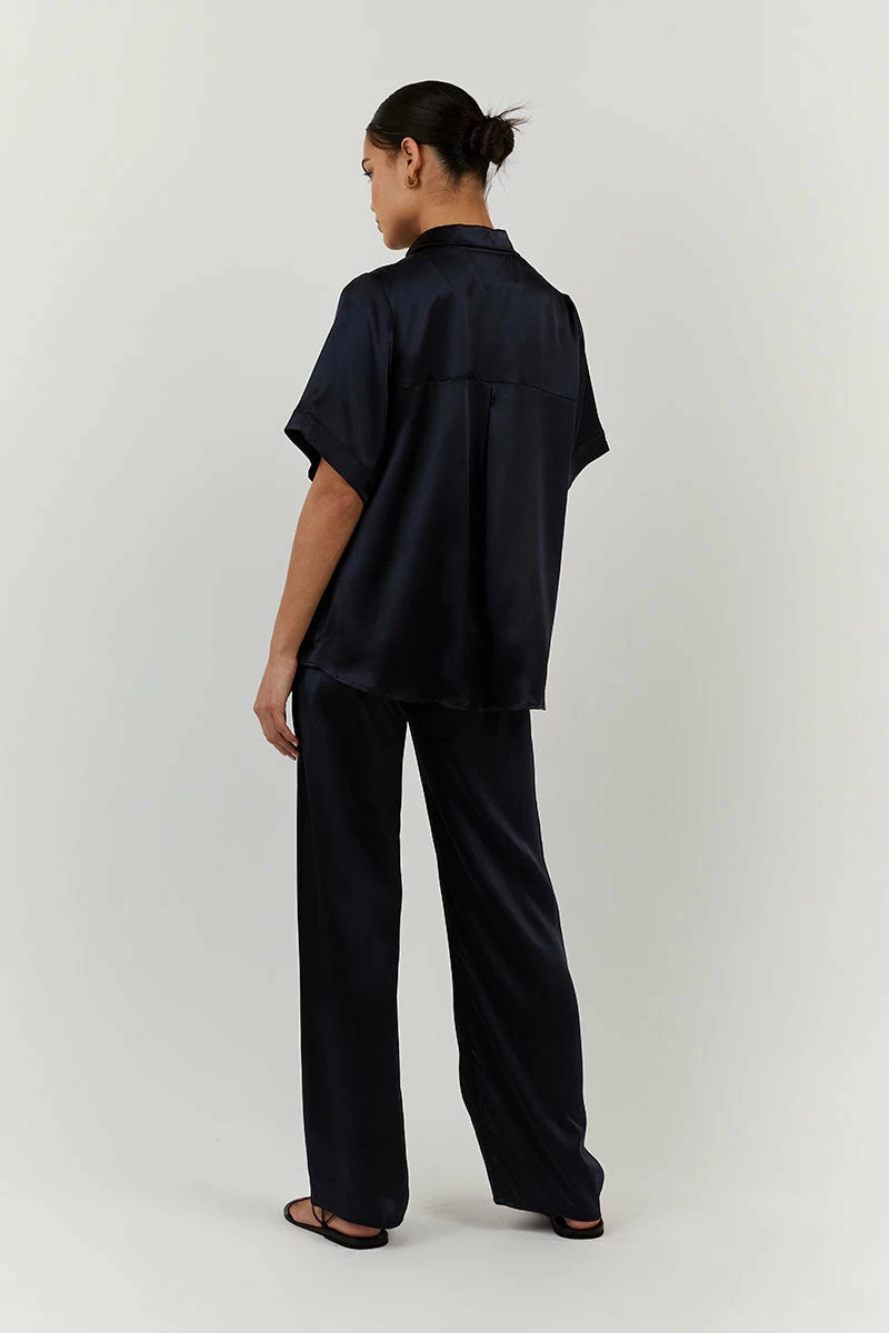 DISSH EVANS NAVY SILK VACATION SHIRT