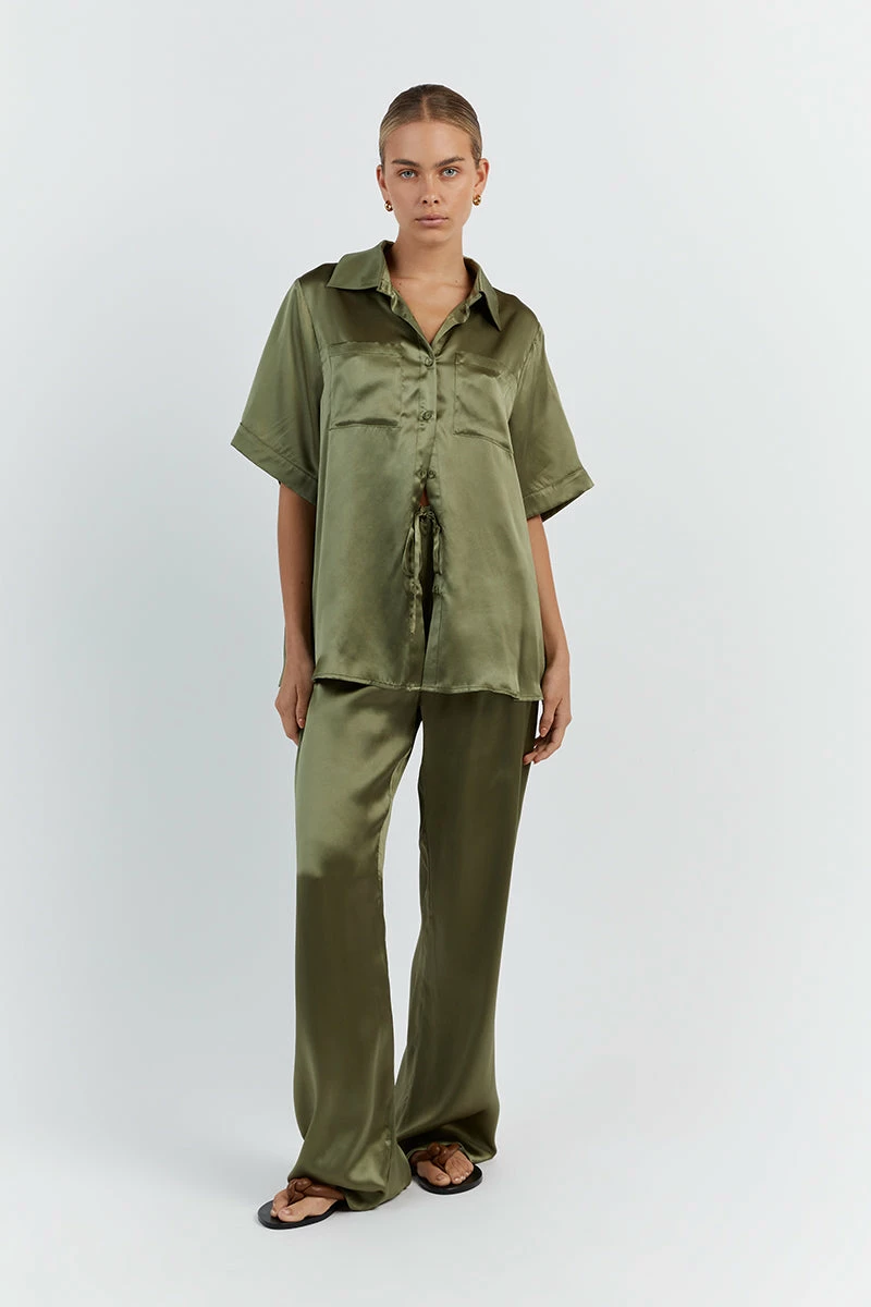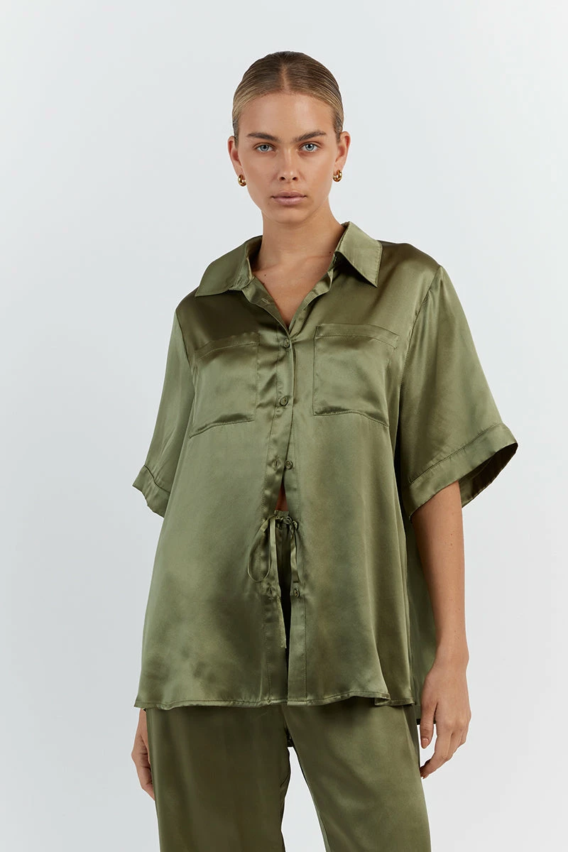 DISSH EVANS OLIVE SILK VACATION SHIRT