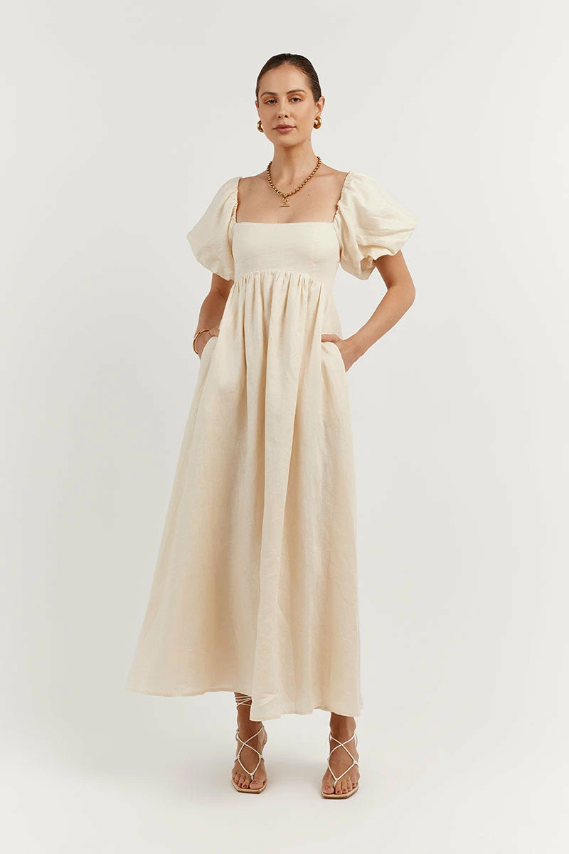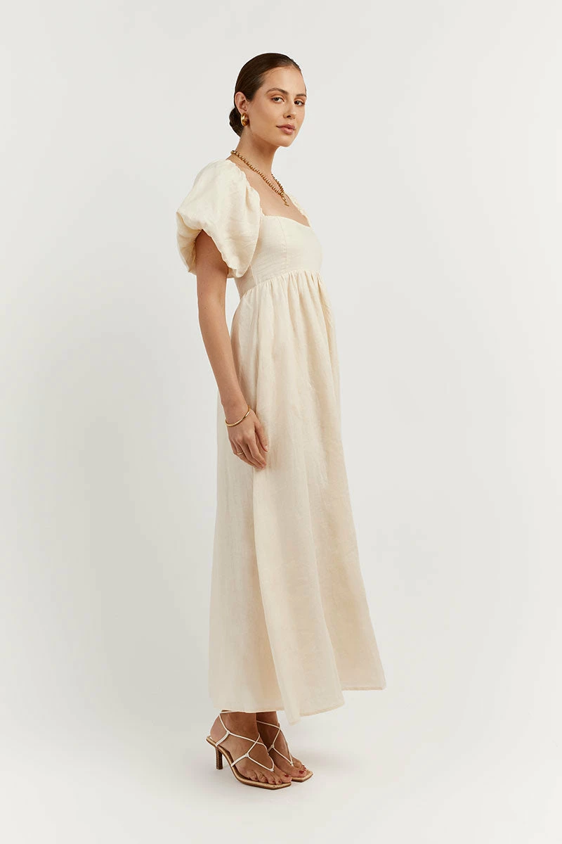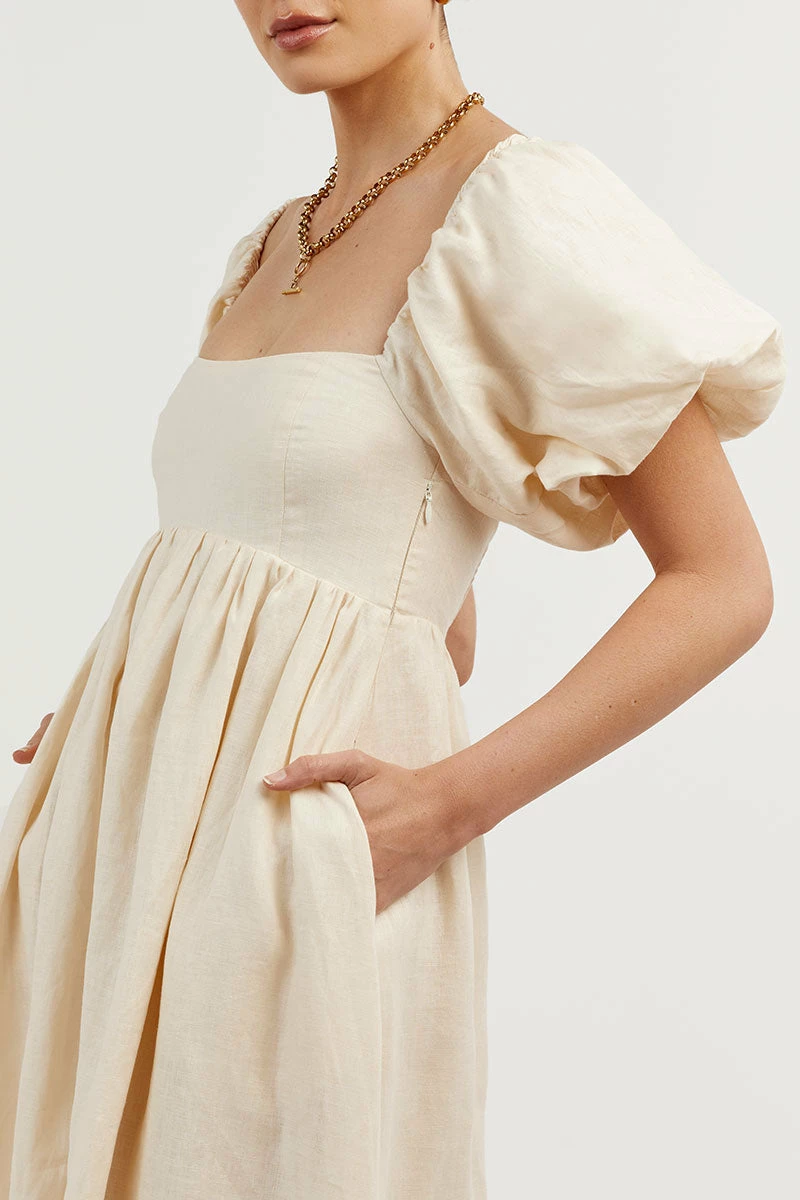 DISSH MONTY BUTTER LINEN MIDI DRESS