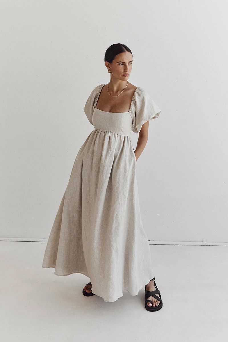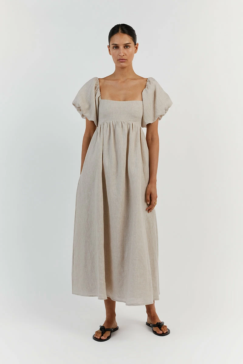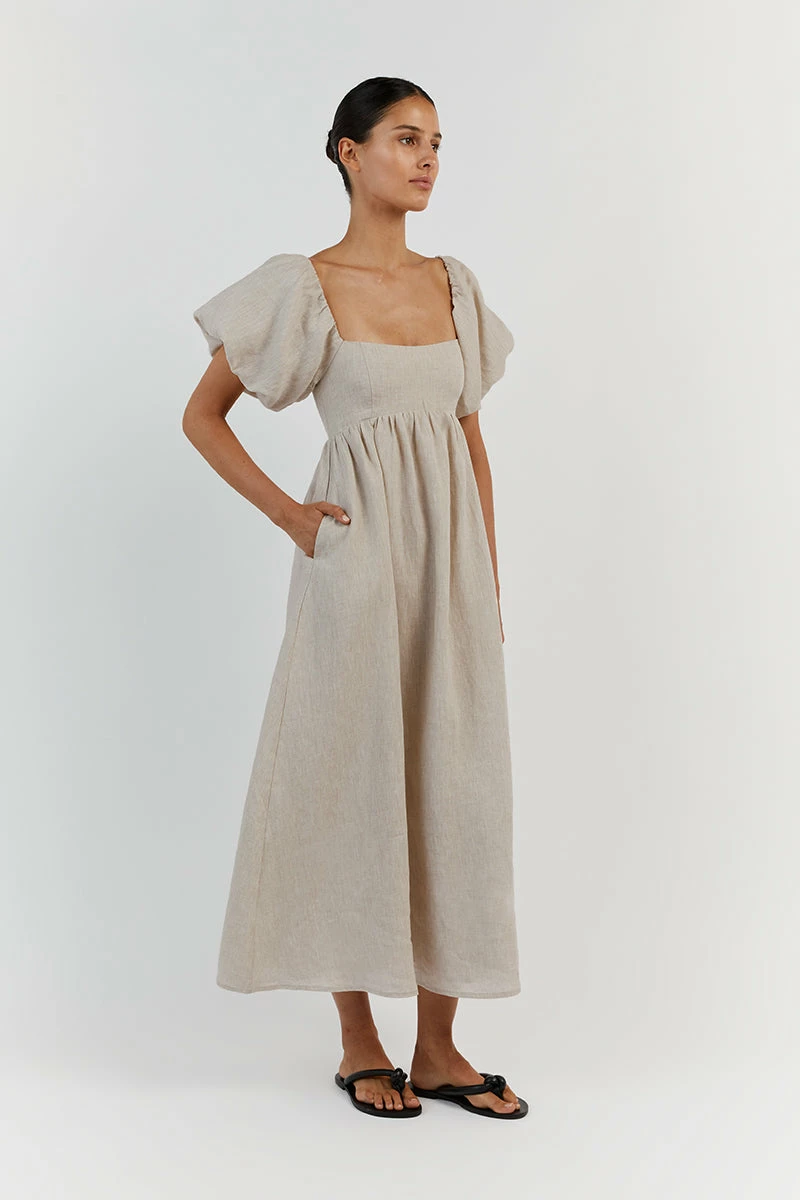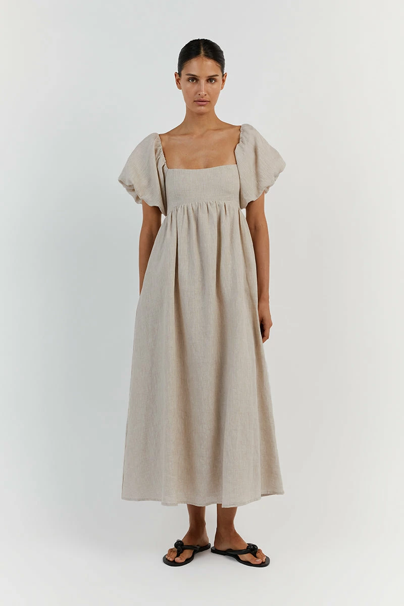 DISSH MONTY NATURAL LINEN MIDI DRESS