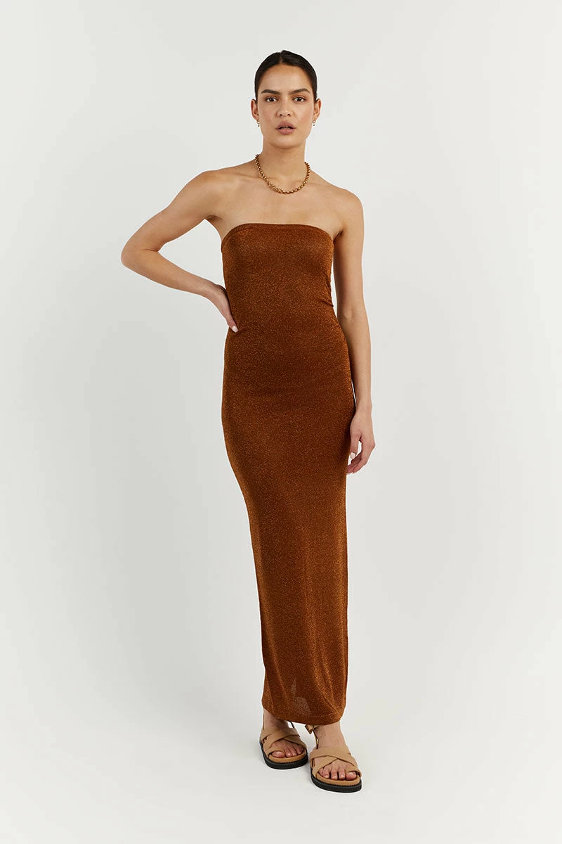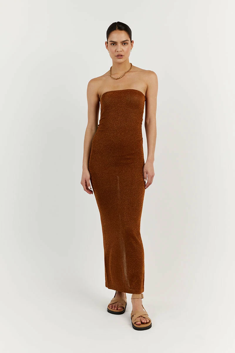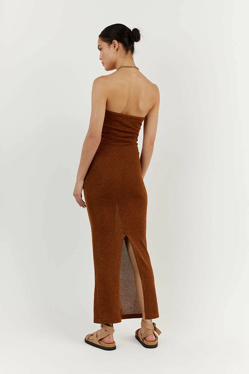 DISSH NICO BURNT ORANGE METALLIC MIDI DRESS
