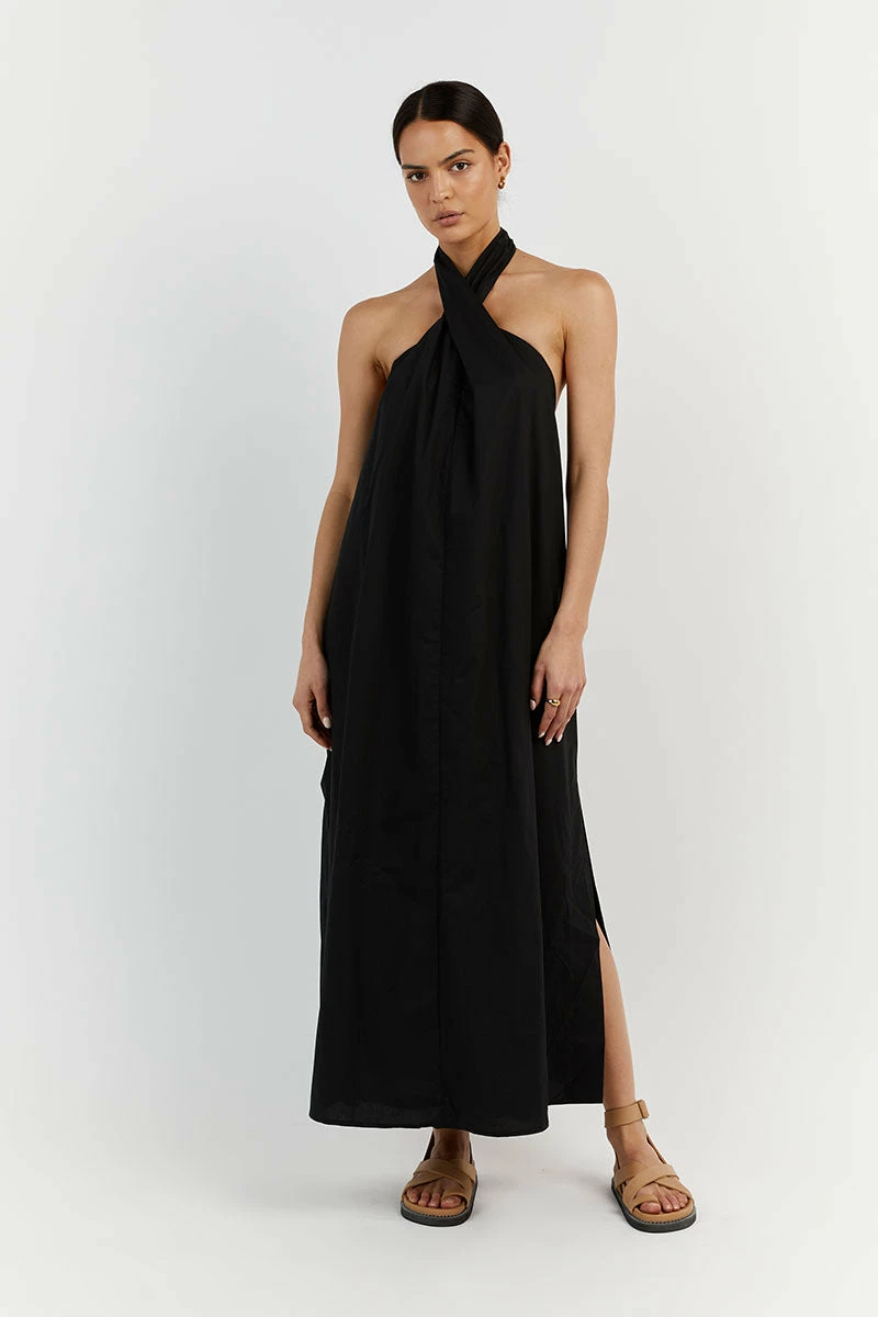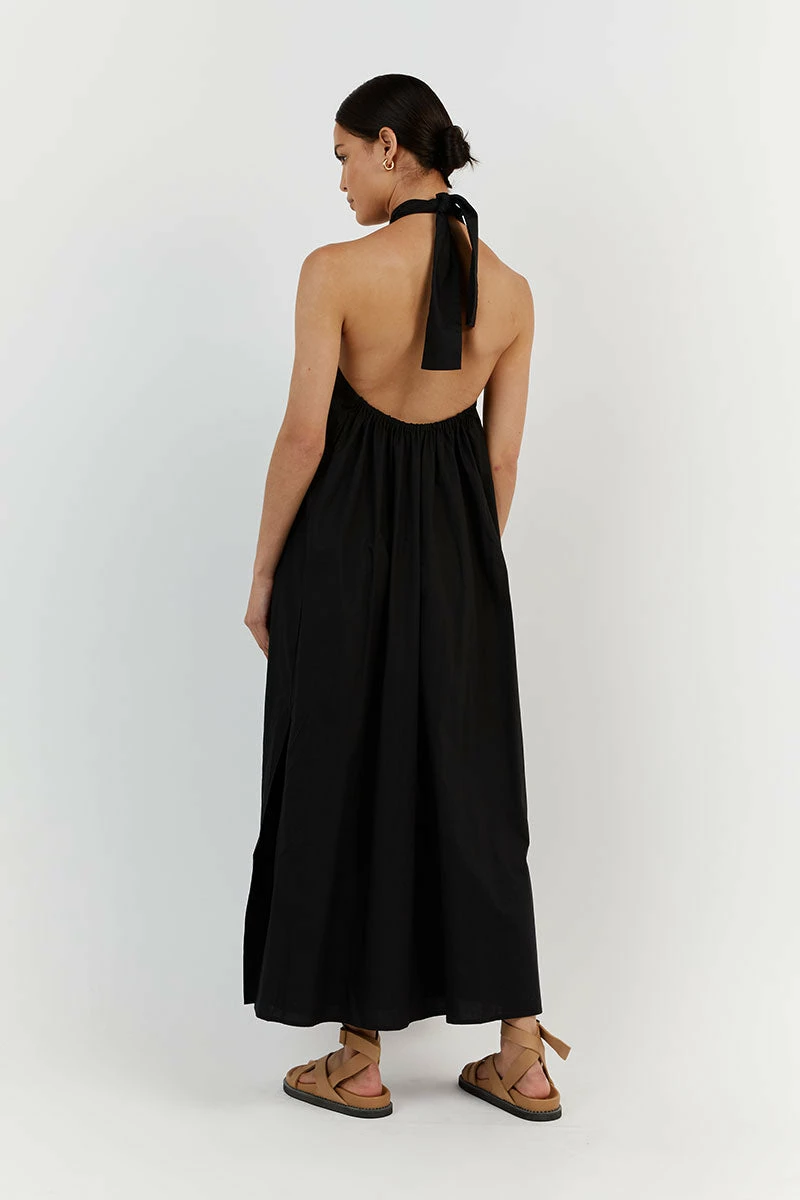 DISSH OLIVIA BLACK COTTON MIDI DRESS