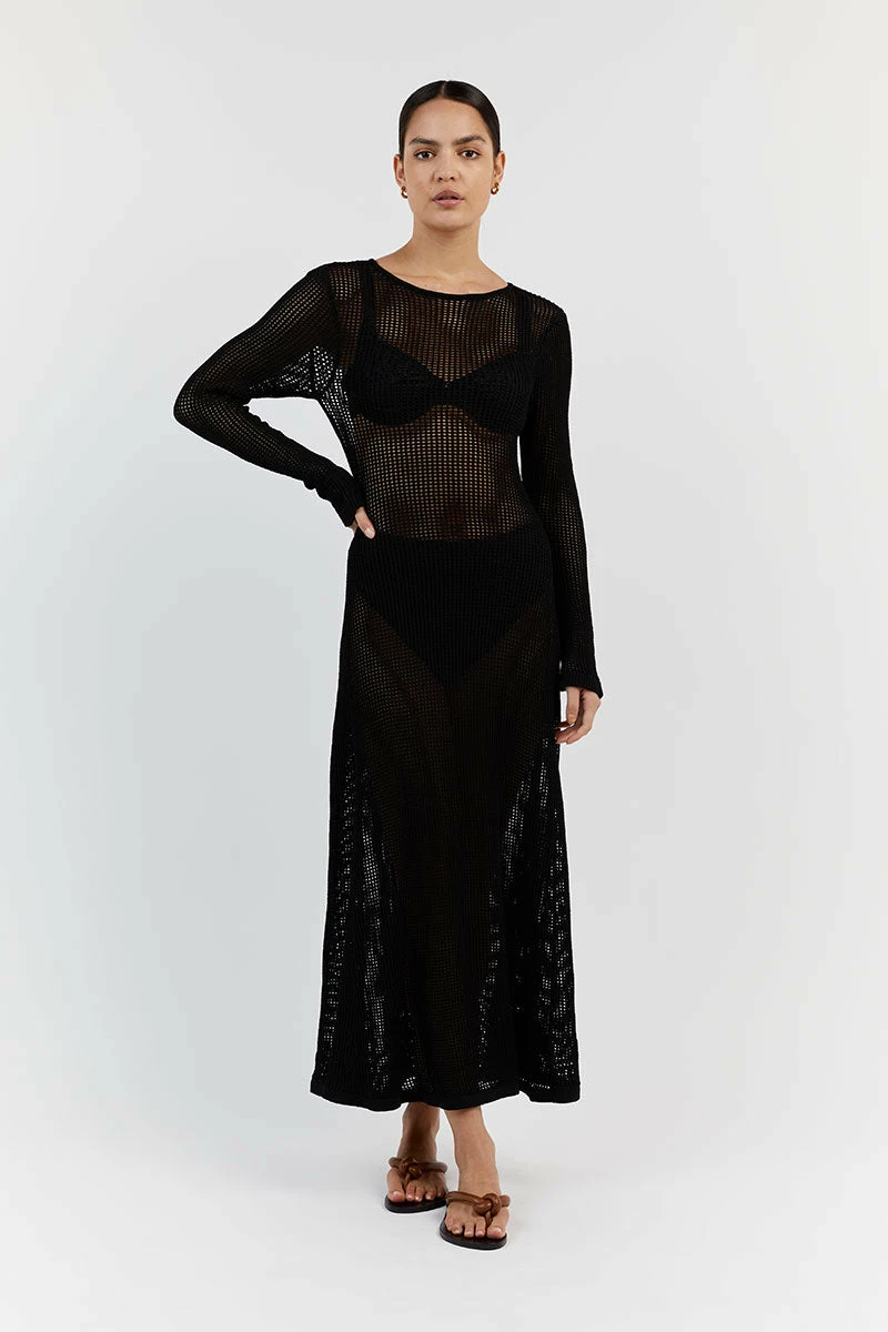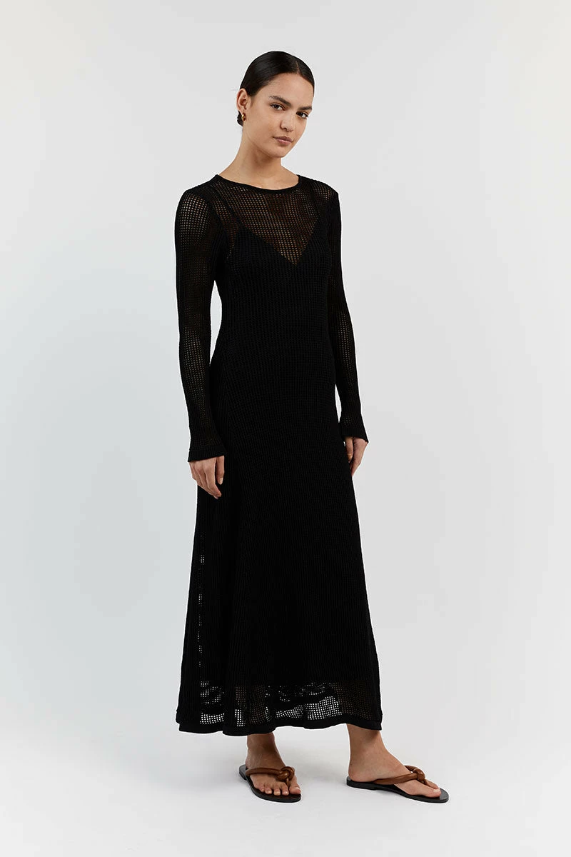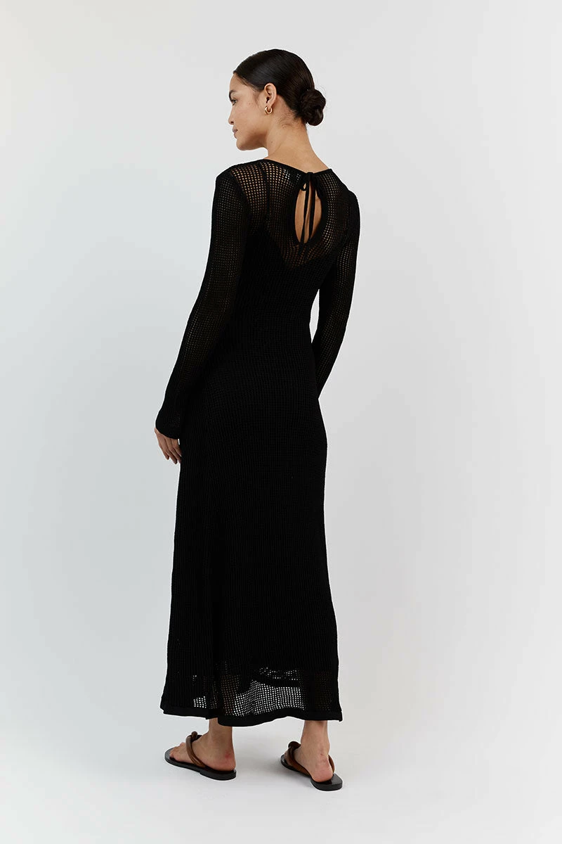 DISSH OPHELIA BLACK CROCHET MAXI DRESS