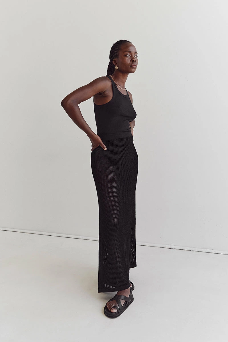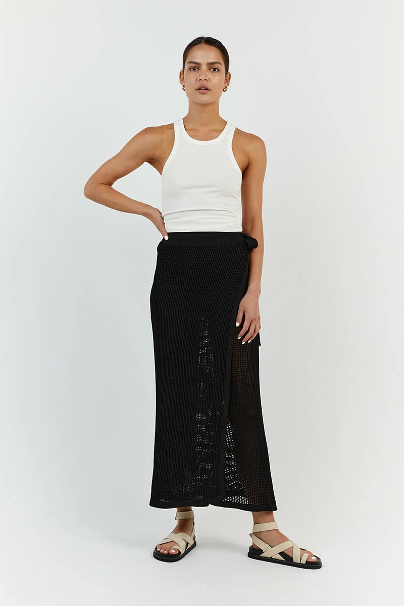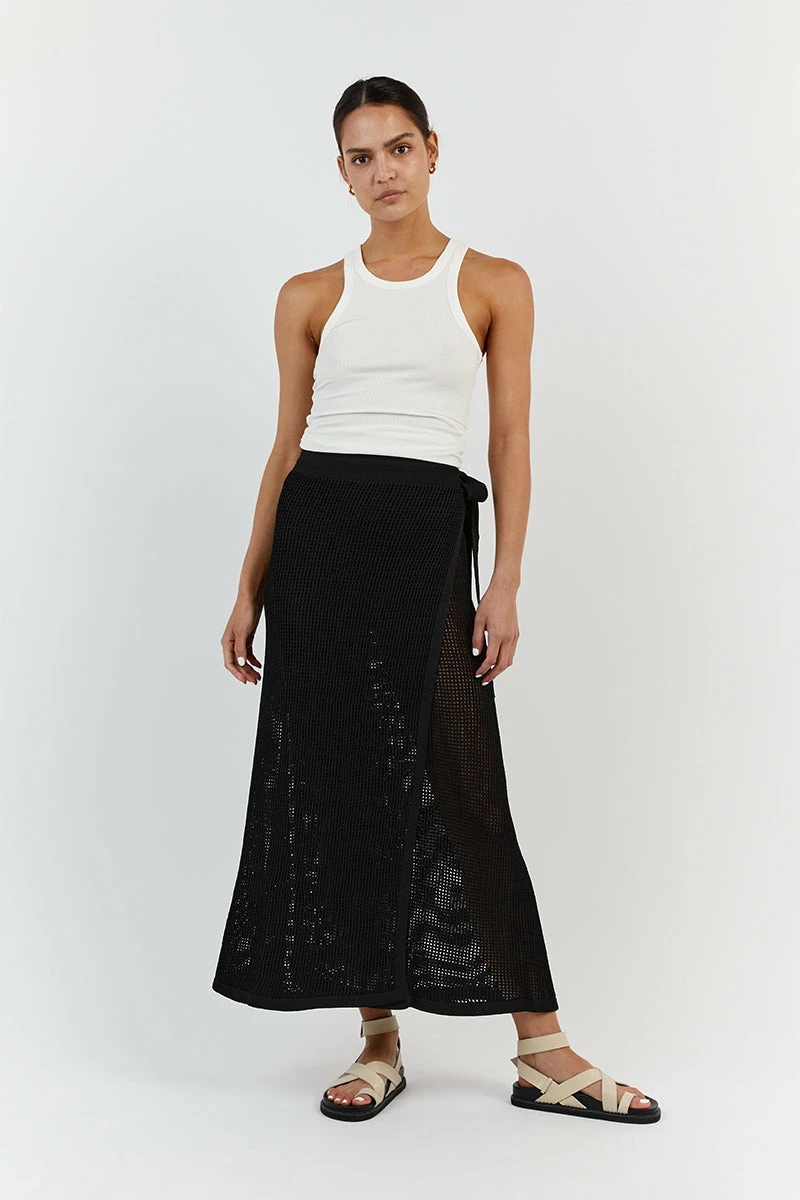 DISSH OPHELIA BLACK CROCHET WRAP SKIRT