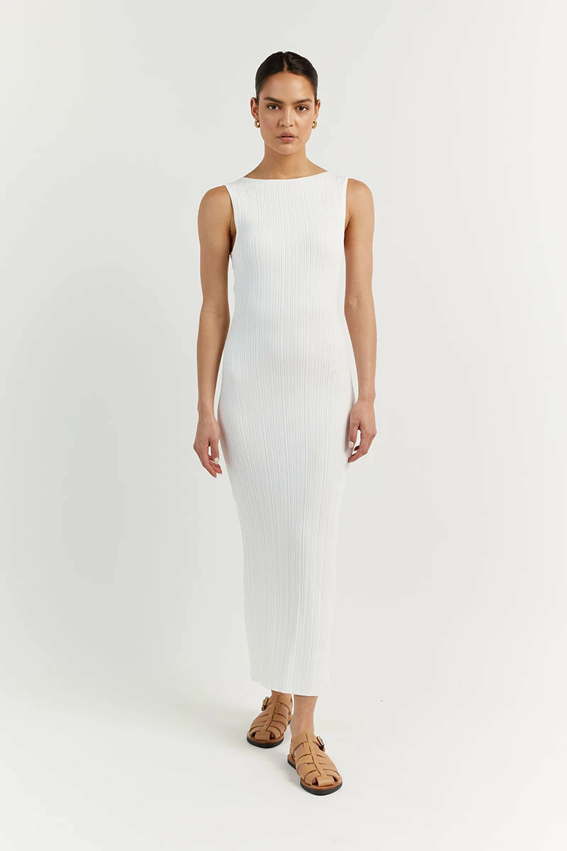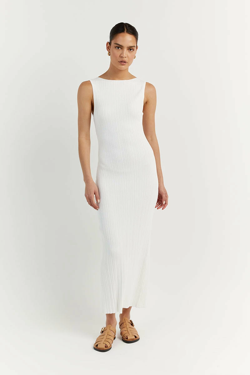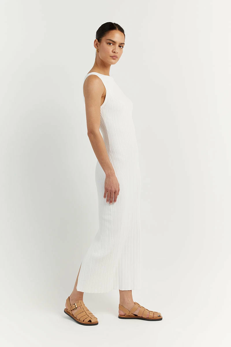 DISSH SIENNA OFF WHITE KNIT MIDI DRESS