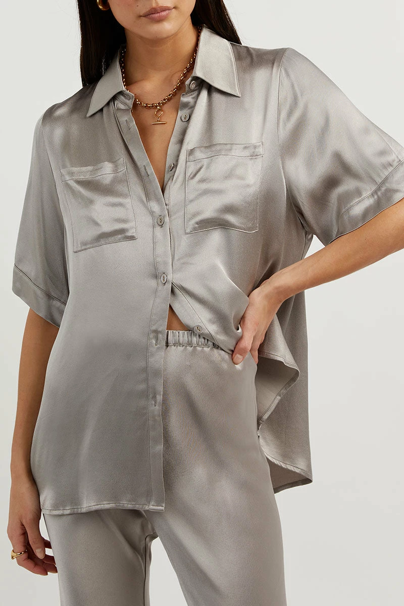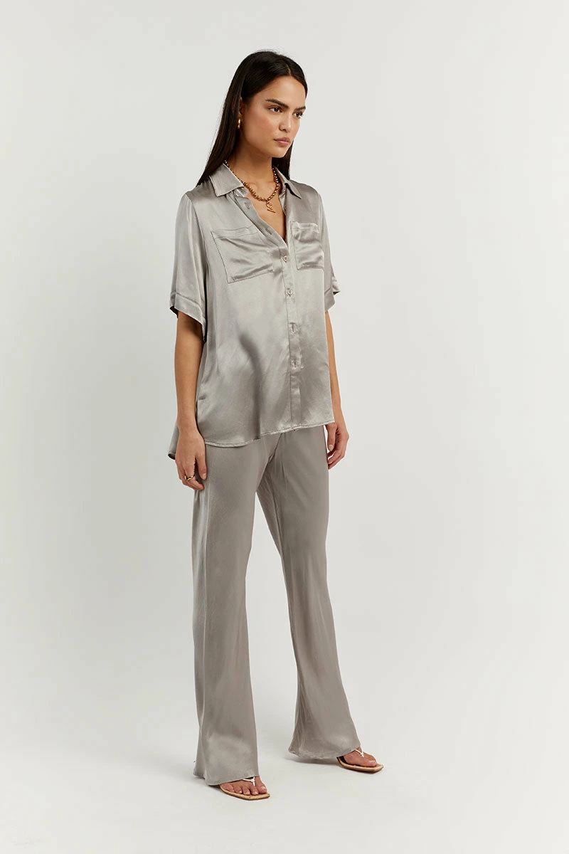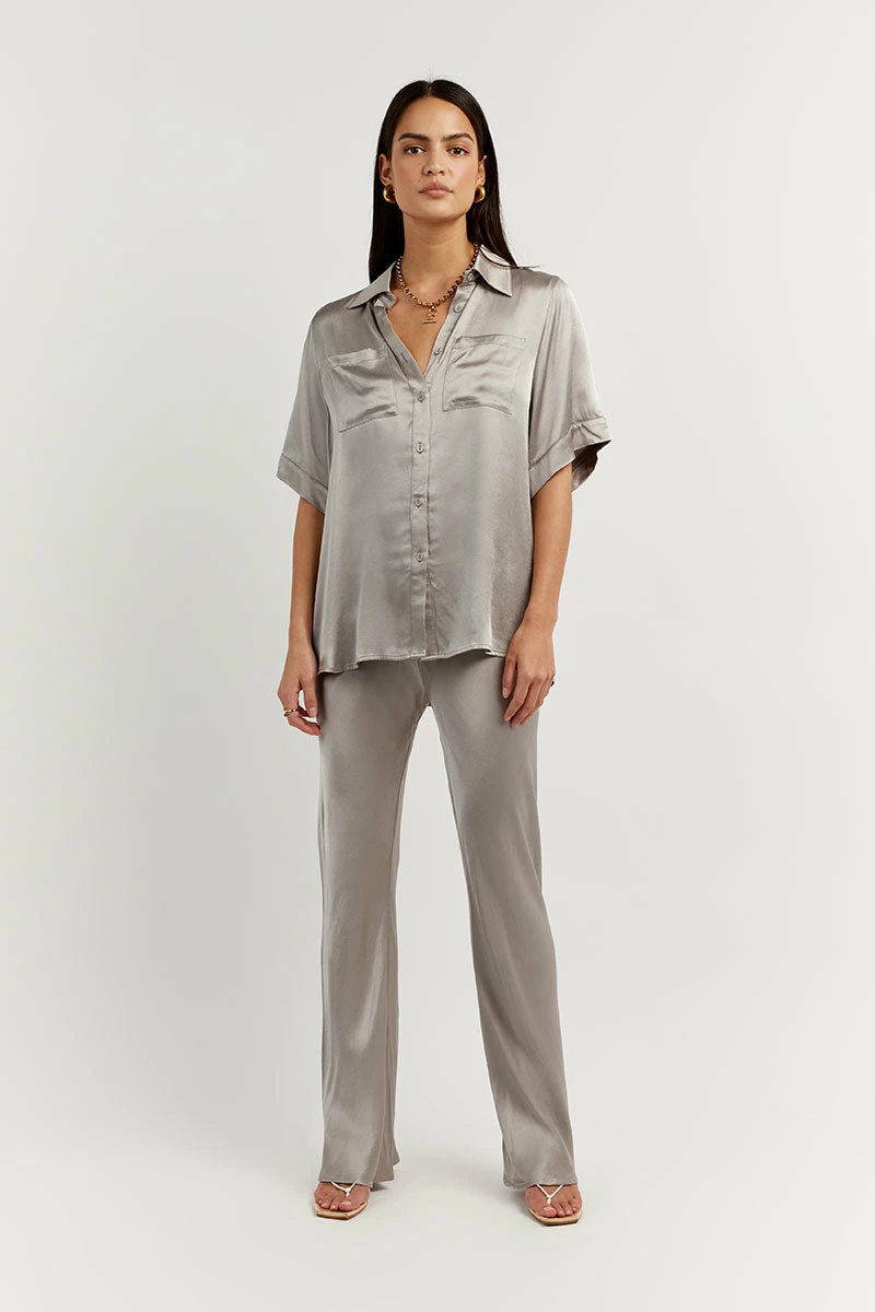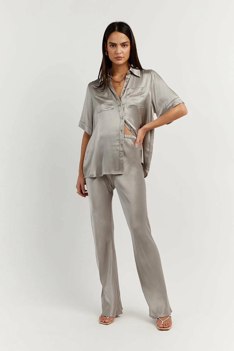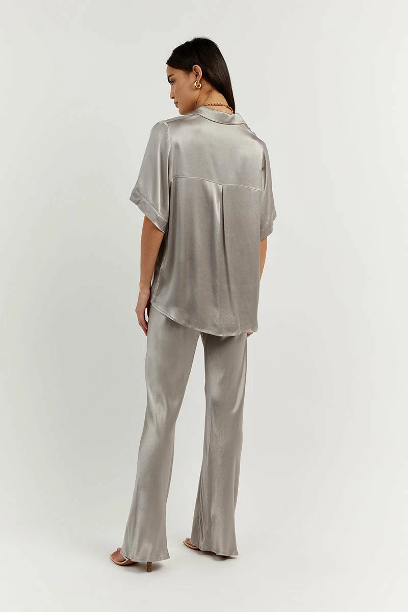 DISSH SIMONE PEWTER SATIN BIAS CUT PANT