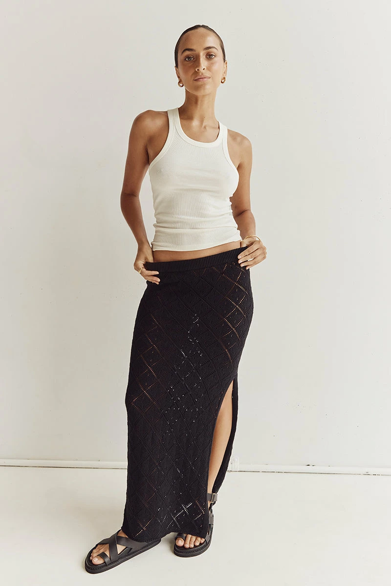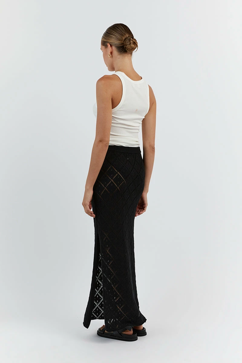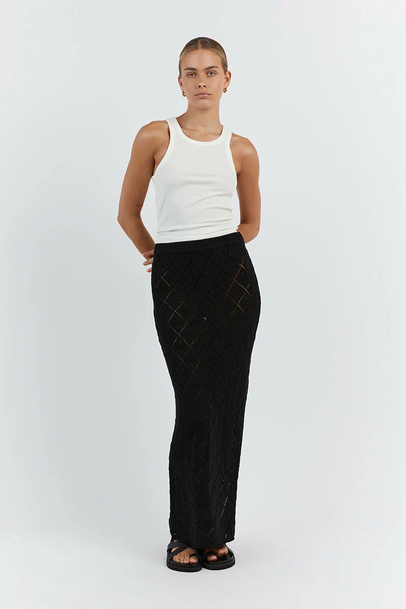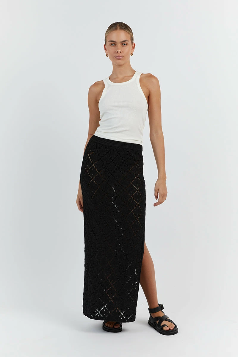 DISSH SORRENTO BLACK CROCHET MIDI SKIRT
