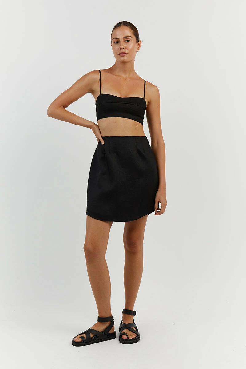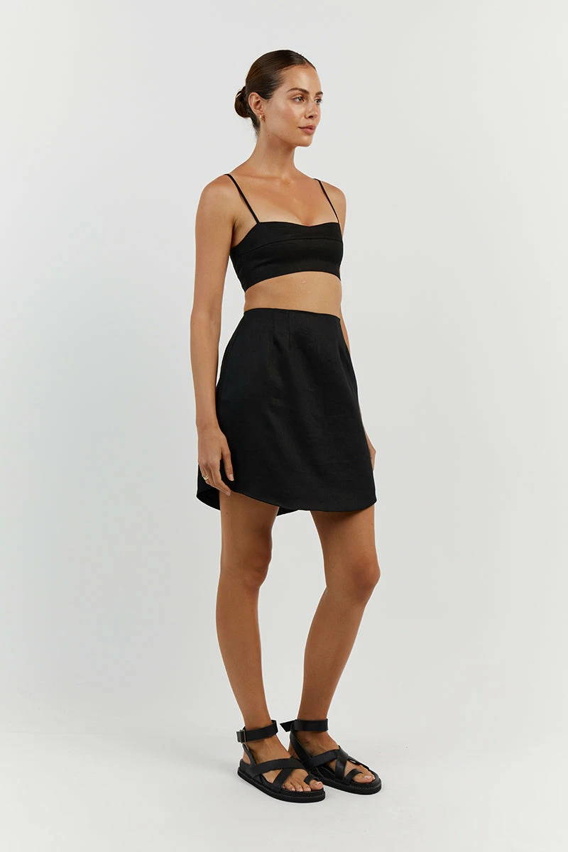 DISSH VIENNA BLACK LINEN MINI SKIRT